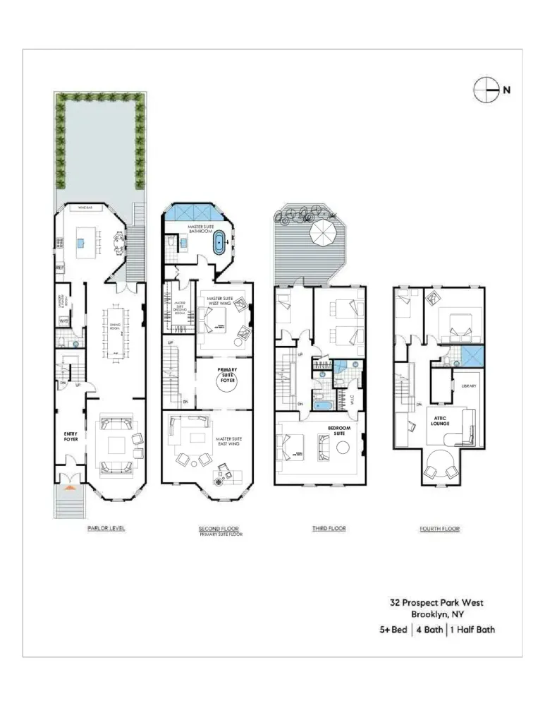 Discover luxury in this sunlit 1888 Romanesque Revival mansion. This rare 23-foot wide residence features 5+ bedrooms, 4.5 bathrooms, and is situated directly on Prospect Park in prime Park Slope, steps from Grand Army Plaza and 20 minutes from the city. Enjoy nearly 7,000 sq ft of indoor and outdoor space, perfect for an opulent lifestyle.