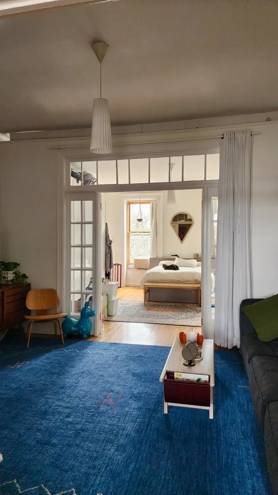 With high ceilings, abundant natural light, and tasteful ornate brownstone details, this home blends contemporary style with classic charm. The open eat-in kitchen was custom designed, featuring ample cabinetry, large stainless steel appliances, including a dishwasher, and a kitchen island that’s a dream for anyone who loves...This spacious, light-filled 2-bedroom floor-through apartment in a 25 ft wide brownstone is located on a charming, leafy side street near the Carroll Street subway - has it all!