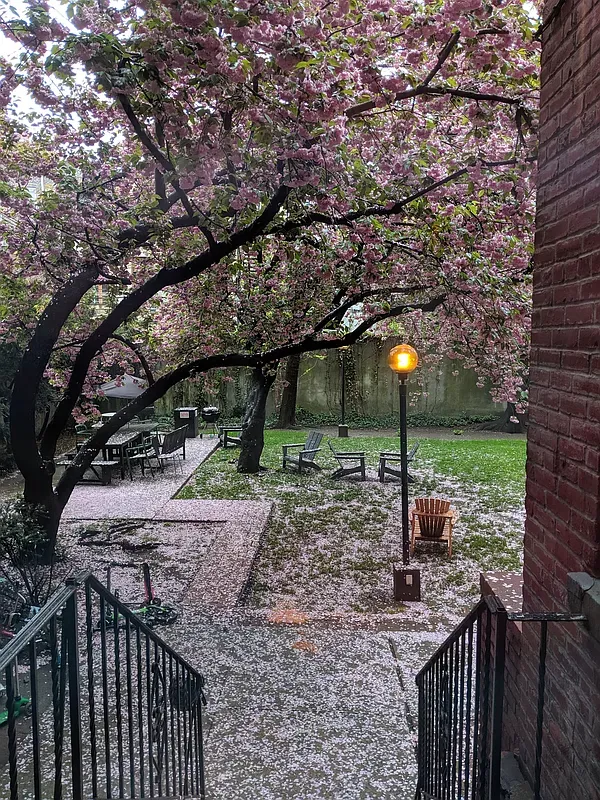 Cobble Hill Towers also has an enviably large common courtyard with tall trees, lovely flower beds, grassy areas, and a barbecue grill which is perfect for picnics! The condo has free open bike storage as well.