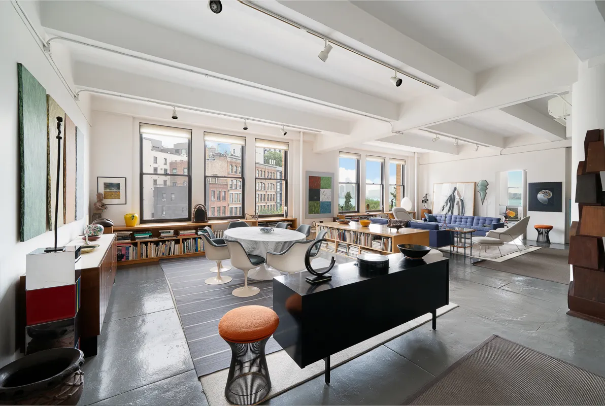 FULL FLOOR, 4,800 square ft Loft with with Hudson River and park views. This light filled, open Loft at 477 Washington Street has 12 ft ceilings, oversized windows on three sides, a 37' by 24' Grand Salon area for entertaining and dining, four (4) bedrooms, 3.5 baths, media room, artist's Studio, office and large foyer with a garden and incredibly low maintenance of only $2,000 month! The open kitchen has everything a chef needs to prepare fantastic meals, the loft has its own washer and dryer and...FULL FLOOR, 4,800 square ft Loft with with Hudson River and park views. This light filled, open Loft at 477 Washington Street has 12 ft ceilings, oversized windows on three sides, a 37' by 24' Grand Salon area for entertaining and dining, four (4) bedrooms, 3.5 baths, media room, artist's Studio, office and large foyer with a garden and incredibly low maintenance of only $2,000 month! The open kitchen has everything a chef needs to prepare fantastic meals, the loft has its own washer and dryer and there is an oversized elevator at each end of the Loft. There is abundant storage, central air, two lobbies, and the floorplan can be changed to create your dream loft with wonderful views!