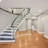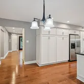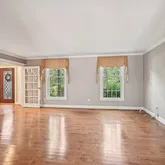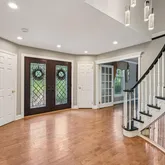 A stately stone façade and newer vinyl siding frame the custom double Mahogany front doors, adorned with leaded glass, setting the tone for the elegance found within. Step into the grand foyer, where a sweeping hardwood staircase and rich maple floors make a dramatic first impression. The entire home is tastefully finished in today’s warm, neutral palette, creating a sophisticated yet welcoming ambiance.