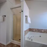- Interior Features: Bathtub/Shower Combination, Cathedral Ceiling(s), Ceiling Fan(s), Double Vanity, Eat-in Kitchen, Entrance Foyer, High Ceilings, Quartz Counters, Separate Shower, Soaking Tub, Walk-In Closet(s), Walk-In Shower, Whirlpool Tub