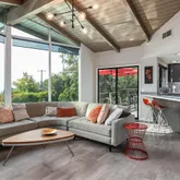 - Interior Features: Bar, Beamed Ceilings, Remodeled Kitchen, Walk-In Pantry, Pantry, High Ceilings, Quartz Counters, Open Floorplan, Sunken Living Room, Balcony, Stone Counters, Copper Plumbing Partial