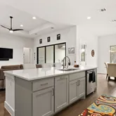 - Interior Features: Breakfast Bar, Ceiling Fan(s), Eat In Kitchen, High Ceilings, In Law Floorplan, Kitchen Island, Main Level Master, No Interior Steps, Open Floorplan, Pantry, Quartz Counters, Recessed Lighting, Storage, Soaking Tub, Walk In Closets