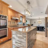 - Kitchen: Center Island, Sliding Door, Floor - Ceramic, Newer, Kitchen/Dine, Granite/Stone Counter, Eat-In