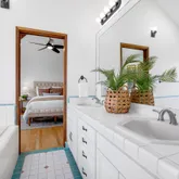 - Bathroom: Double Sinks, Full on Ground Floor, Primary - Oversized Tub, Primary - Stall Shower(s), Primary - Tub with Jets, Showers over Tubs - 2+, Skylight, Stall Shower - 2+, Tile, Tub with Jets