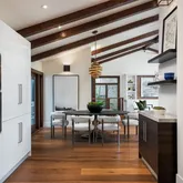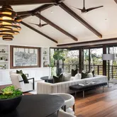 - Interior Features: Beamed Ceilings, Built-in Features, Cathedral Ceiling(s), Ceiling Fan(s), High Ceilings, Living Room Deck Attached, Open Floorplan, Recessed Lighting