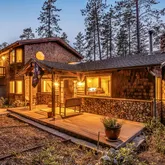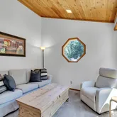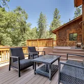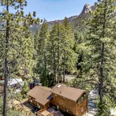 This Idyllwild home, set on a flat lot surrounded by towering pine and oak trees, is located within the highly sought-after community of Fern Valley. Thoughtfully designed, this three-bedroom, two-bathroom residence embodies modern living standards, creating a spacious and inviting atmosphere perfect for both relaxation and entertaining. As you arrive, a covered porch invites you into this charming mountain home. Inside, the living room features cedar walls and vaulted cedar ceiling, a wood-burning...This Idyllwild home, set on a flat lot surrounded by towering pine and oak trees, is located within the highly sought-after community of Fern Valley. Thoughtfully designed, this three-bedroom, two-bathroom residence embodies modern living standards, creating a spacious and inviting atmosphere perfect for both relaxation and entertaining. As you arrive, a covered porch invites you into this charming mountain home. Inside, the living room features cedar walls and vaulted cedar ceiling, a wood-burning stove set atop a custom raised hearth is perfect for cozy winter nights and a ceiling fan ideal for warm summer days, creating a welcoming space for all seasons. The large dining room, featuring picture windows bringing the outdoors in, offers an intimate setting for family gatherings and entertaining friends. Adjacent to the dining room is a generously sized, well-appointed kitchen with a skylight, breakfast bar, and ample counter space, cabinets, and drawers, designed for ease of use. Both main level guest bedrooms offer ample closet space and are serviced by a beautifully remodeled bathroom. The laundry room, which can double as a mud room, is conveniently accessible from both the attached garage and backyard, further enhances the home's functionality. Upstairs, the spacious primary ensuite features a large closet and a fully remodeled bathroom with dual vanities, a large shower, and ample storage. The primary suite boasts a private balcony, offering a peaceful spot to take in the surrounding natural beauty, along with an extra retreat area that provides versatile space to suit your needs. Outside, the property boasts a large, fenced yard with a two-tier backyard deck, perfect for outdoor entertaining or simply enjoying the serene environment. Additional amenities include a one-car attached garage with storage, a two-car detached garage with even more storage space, a detached carport, and an abundantly stocked woodshed for added convenience. An outbuilding on the property offers endless possibilities, whether used as an artist's studio, crafting room, or private office. This home is equipped with central air and forced heat, ensuring comfort throughout the year. It's also turnkey furnished, allowing you to move in and start enjoying your new home right away. Conveniently located close to town, this property offers the perfect combination of peaceful mountain living with easy access to local amenities. Whether you're searching for a full-time residence or a weekend retreat, this Fern Valley gem is ready to welcome you home.