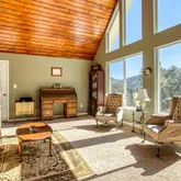 - Room Description: Part of the addition. Great views, new carpeting, door to deck with hot tub, high vaulted ceiling