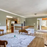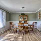 - Room Description: Large room with seating for 8. Doors to the large deck in front of the house. Wainscoting and newer floorboards, with new laminate flooring