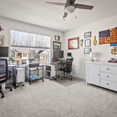- Room Features: Ceiling Fan(s), Flooring - Carpet, Window Treatments