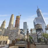 The adjacent bright dining area stands ready for your next dinner party, while just outside, the massive 400-square-foot terrace is wrapped in breathtaking views of Downtown's most iconic buildings, including the Woolworth Building, One World Trade and New York by Gehry. Bask in open-sky serenity while enjoying an oversized hot tub topped in an Indonesian-style gazebo, built-in teak sofas, full outdoor kitchen and exposed brick and tile details. A powder room and extra storage space complete the lower level, while bedrooms are tucked upstairs for total tranquility. The peaceful master suite features a private balcony overlooking the terrace, generous closet space and a spa-inspired marble bath with double vanity and rain shower. Two more spacious bedrooms face north with easy access to the second full bathroom.