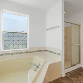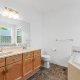 a grand en suite bath with a soaking tub and vanity with double sinks. The 3 additional