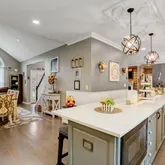 - Kitchen: Center Island, Floor - Wood, Sliding Door, Quartz, Newer, Eat-In