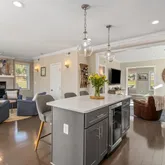 Unparalleled flow throughout the main level provides an ideal floor plan for both casual and formal entertaining. The living room leads to the dining room,...Welcome to this charming four-bedroom, three-and-a-half-bath home in the beloved town of Glen Echo. This lovely, bright south-facing home was thoughtfully renovated with modern, tasteful upgrades. This home features an open kitchen with a large island, quartz countertops, a wine fridge, stainless steel appliances, and a sunny bay breakfast nook.