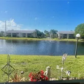 2/2 condo on the 1st floor with a serene water view from the screened lanai and a private green view from the front. Luxury Vinyl Tile throughout- newer appliances, a/c 2025, h/w tank 2022,, This home has Coastal Farmhouse charm from wall to wall-stack washer and dryer hidden by a barn door,; kitchen ceiling is paneled, bee board in many rooms, two toned cabinets, roller blinds on guest bedroom windows, 6 panel doors. There is also a car port to shelter...Move in ready-Beautifully renovated and furnished.