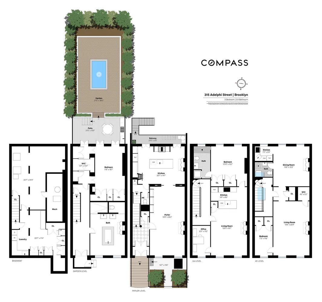 Begin with...This stately 22-foot-wide brownstone at 315 Adelphi Street offers nearly 4,000 square feet of living space and a rare mix of historic character, thoughtful updates, and strong rental income. Built in 1867 as part of a row of Italianate-style homes, it sits on one of Fort Greene’s most beloved tree-lined blocks and is configured as a legal three-family with an owner’s lower duplex and two renovated floor-through apartments above. Keep as is or convert to a magnificent single family home.