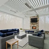 Noteworthy is the addition of a spacious terrace extension, meticulously overseen by the owners, boasting a state-of-the-art 3-season room complete with an adjustable roof, overhead heaters, and electronic shades. This architectural marvel seamlessly blends indoor and outdoor living, providing a sanctuary for year-round enjoyment.