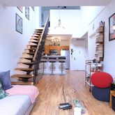 On the first level you will find the open concept living area with an eat-in-kitchen, a bedroom, full bathroom and laundry. The exposed staircase takes you to the upper level, which houses the second bedroom, full bath and leads out onto the private, outdoor...Welcome to 888 Myrtle Ave apartment 4A, a duplex level condo in Bed-Stuy that features a 500 Sq Ft private terrace, central AC, a walk-in-closet with Elfa customizations, washer/dryer in-unit, and stainless steel appliances including a Dishwasher.