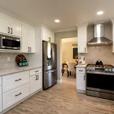 - Kitchen: Countertop - Quartz, Dishwasher, Exhaust Fan, Freezer, Garbage Disposal, Hood Over Range, Microwave, Oven Range - Gas, Pantry, Refrigerator, Wine Refrigerator