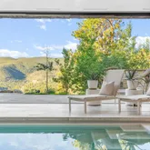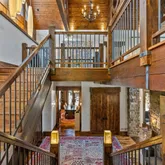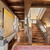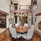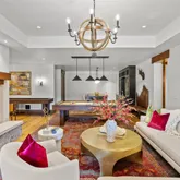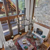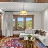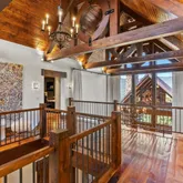 - Room Description: Architecturally stunning with vaulted ceilings with exposed dark wooden beams, creating a dramatic and inviting space perfect for entertaining or relaxation.