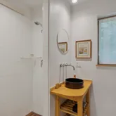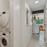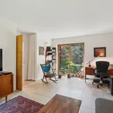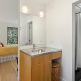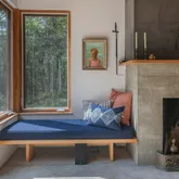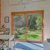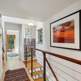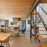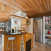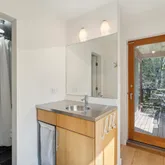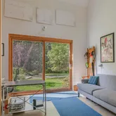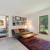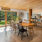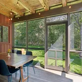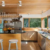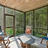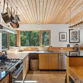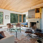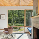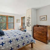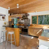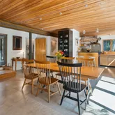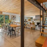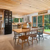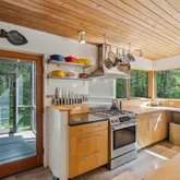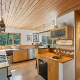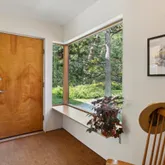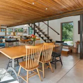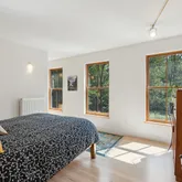 installation of a habitat hedgerow - an ecological garden designed by Larkspur Design of Portland. The expansive windows and slider provide an up-close view of the new landscape to the south. The east facing kitchen with new appliances opens to a new screened porch for early morning or evening dining. The open floor plan on the first floor has concrete floors with radiant heat which provides warmth in the winter and natural cooling in the summer. The living room features a wood