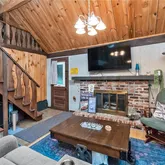 - Room Description: Hardwood floors/tile, fireplace set in brick