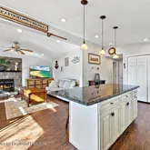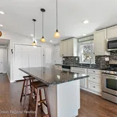 - Kitchen: Center Island, Floor - Laminate, TRY/VLT/CATH, Sliding Door, Newer, Floor - Wood, Eat-In