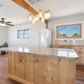 Welcome to this private, updated, modern style rural home, nestled in the quiet, mature trees of Yoder, CO with unobstructed views of the Mountains and beyond. Located just far enough from town and on almost 40 acres, from the moment you head up the drive, you will have all of the potential to maximize time spent outdoors with plenty of room in the home! Amenities abound in the 2,024 square feet ranch home with luxury vinyl flooring, walkout to expansive deck, and more! Upon entering, you will love...Welcome to this private, updated, modern style rural home, nestled in the quiet, mature trees of Yoder, CO with unobstructed views of the Mountains and beyond. Located just far enough from town and on almost 40 acres, from the moment you head up the drive, you will have all of the potential to maximize time spent outdoors with plenty of room in the home! Amenities abound in the 2,024 square feet ranch home with luxury vinyl flooring, walkout to expansive deck, and more! Upon entering, you will love the incredible windows allowing beautiful natural light and views. The living room boasts soaring ceilings with wood beams and a brick wood burning fireplace. The kitchen features custom wood cabinetry, stone countertops and a large island, with pot filler above the gorgeous stove. As its own private retreat, the master bedroom has a private bathroom with updated features. The spacious basement also has 3 additional bedrooms, 3/4 bathroom and storage rooms. Other great features include chicken coop, barn; there is room to park an RV with a garage door, and paved floor. It's a perfect place to store an RV! has full electrical and a water pump inside as well as access to fenced area behind the barn. The property is fully fenced, convenient for livestock. This home also includes a water purification system, and Starlink to connect you to the rest of the world. Don’t let this paradise slip away and schedule a tour today!