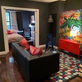 Special note: This apartment was originally a 2 bedroom. The living room in the unit has been converted to a add a 3rd bedroom. The sliding frosted glass doors allow for light in the living room. The living room has no windows and one of the bedrooms is below grade, but is set up as a beautiful master suite with a beautifully renovated bathroom. Each bedroom can fit a full or a queen sized bed. The bedroom on the lower level can fit a king sized bed.