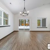 set under a statement chandelier light. Beautiful wood-look flooring and high ceilings enhance the sense of space and there are slider doors that invite you to step out to the covered rear patio. This must-see residence.