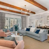 - Interior Features: Beamed Ceilings, Bookcases, Breakfast Bar, Built-in Features, Pantry, Ceiling Fan(s), Crown Molding, Double Vanity, High Ceilings, Kitchen Island, Open Floorplan, Master Downstairs, Quartz Counters, Recessed Lighting, Smart Home, Smart Light(s), Smart Thermostat, Smooth Ceilings, Walk-In Closet(s), Water Closet, Wired for Sound