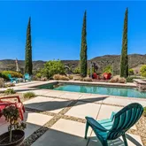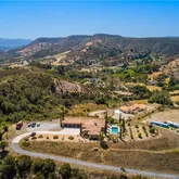 getaway, this home is sure to please. The sweeping driveway takes you the the oversized flat pad that offers plenty of parking for guests as well as many options for the future. The double door entry affords...SINGLE STORY VIEW HOME...situated at the top of a hill in the De Luz foothills just above the booming city of Temecula. This luxurious single story home is perfect for someone looking for privacy, views and serenity. Whether you are downsizing from a larger home or moving up to a gracious country