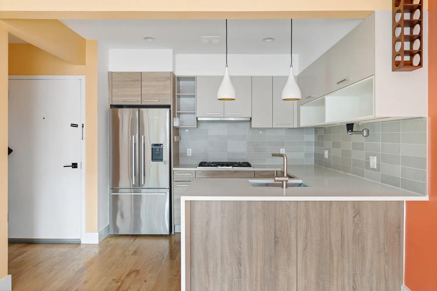 As you enter, you'll be greeted by a well-designed floor plan spanning 544 sq.ft., that maximizes every inch of space. The residence features oversized Pella windows and white oak floors. The unit's open kitchen is equipped with stainless-steel top-of-the-line appliances. The Bosch gas range is accompanied by the XO vented hood, with the refrigerator by Fisher & Paykel. The Bosch Silence Plus dishwasher