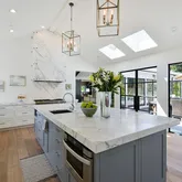 - Bathroom: Double Sinks, Marble, Shower and Tub, Skylight, Stall Shower, Tile, Tub with Jets