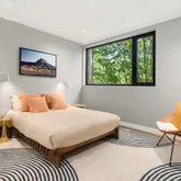 Inside, crafted steel features, sustainable Blonde Douglas Fir millwork, built-in paneled appliances, and double drawer dishwashers by Fisher and Paykel adorn custom kitchens. Bathrooms feature Jason Wu matte black bath hardware, Duravit sinks, Toto toilets, terrazzo floor tiles and full wall back painted glass and mirror accents. The primary bath also has radiant heat flooring. But this home isn’t just about it’s appearance. Behind it’s beautiful exterior, radiant floor heating, multiple zone split system heating and cooling, as well as energy efficient double-pane windows and doors deliver exceptional utility.
