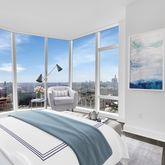 The Master Suite delivers a spacious serenity: with a Bird’s eye view of downtown Manhattan spanning the Williamsburg Bridge, Brooklyn Bridge, to the Verrazano Bridge, Framing the Freedom Tower, wrapping around to the Hudson River on the South West tip of Manhattan.