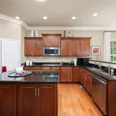 - Room Description: Hardwood floors, double ovens, granite counters and island