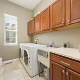 - Room Description: Tile, laundry tub and storage cabinets