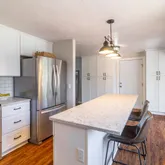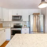 - Appliances: Free-Standing Range, Dishwasher, Refrigerator, Disposal, Microwave, Pantry, Kit Island, Washer, Dryer, Hrd Surface Counters