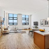 The apartment features over-sized windows, 13 ft ceilings, an enormous living space with solid oak floors. Custom Italian kitchen with DADA cabinetry, Sub-Zero refrigerator, Bosch appliances, quartz counter top and trash compactor. Wall of custom closets and convenient...Luxury 1,082 sqft loft with panoramic views of New York Harbor and Manhattan skyline! This stunning apartment is located on a high floor at One Brooklyn Bridge Park, an iconic warehouse conversion on the waterfront in Brooklyn Heights.
