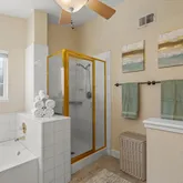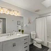 - Bathroom: Double Sinks, Primary - Oversized Tub, Primary - Stall Shower(s), Shower over Tub - 1, Skylight, Updated Bath
