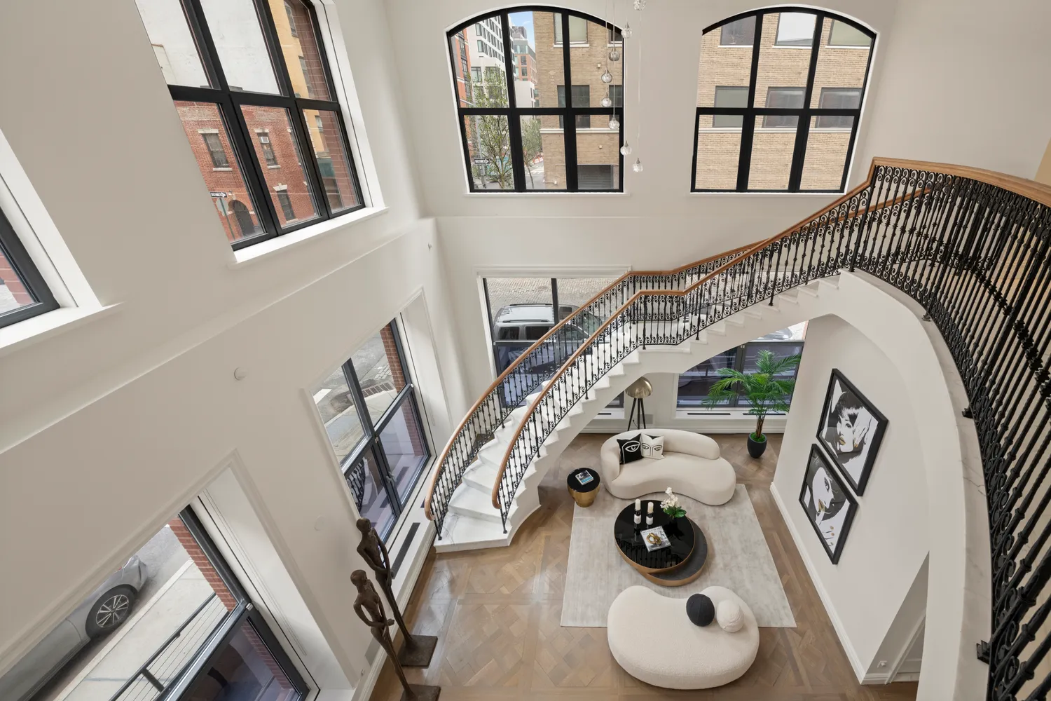 Enter the main level from your private street entrance or through the 24-hour attended condo lobby. Entertain here on a grand scale in the 41-foot-long great room with 23-foot-high ceilings. A striking curved marble staircase...EXCEPTIONAL TRIBECA MAISONETTE. You CAN have it all! Experience the feel of a townhouse and the airiness of a loft within a luxury condominium in a prime Tribeca location. This light-filled, fully-renovated, four bedroom, five bath home offers 4,100 sq ft over three distinct levels.