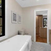 The primary bedroom suite is a true sanctuary, boasting its own private outdoor balcony, a spacious walk-in closet with beautiful cabinetry, a center island, a window seat, and a breathtaking en suite bathroom with tastefully appointed fixtures and exquisite tile work. Each of the additional bedrooms on this floor is thoughtfully designed with built-in organization systems, ensuring ample storage and functionality. The hall full bathroom is as stunning as the others throughout the house, featuring lovely-colored subway tile, a freestanding soaking tub with a fabulous light fixture above, a walk-in shower, and a vanity with beautiful sconces—this bathroom truly epitomizes luxury.