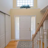 living room and dining room with crown molding are located off the graceful foyer. The