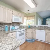 warm and inviting kitchen has loads of cabinetry, granite counter tops, tiled back splash,