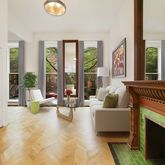 This three bedroom, 2 1/2 bath apartment is absolutely special. The parlor floor features soaring ceiling heights, two lovely decorative fireplaces, an exquisitely restored inlaid hardwood floor, a fabulous kitchen with Agata granite island, KitchenAid stainless appliances, wine cooler, a massive retractable glass wall that leads out to the the deck, rainbow sand stone patio, and a private, beautifully designed garden with low maintenance, environmentally friendly artificial turf and planting beds for you to exercise your green thumb.