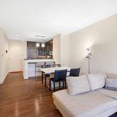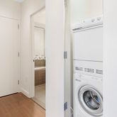This corner unit has 9 ft ceilings and oversized windows that face the landscaped garden terrace with open city views. The open kitchen features a built-in refrigerator, all stainless-steel appliances, Pietra Cardosa stone countertops, and Macassar Ebony wood cabinetry. Other features included a spa-like limestone bathroom with a deep soaking tub, washer/dryer, central AC with 2 zoned climate control systems, motorized solar/blackout shades in both the living room and bedroom, and ELFA closets throughout the unit.