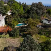 Past the powder room are a formal dining room with spacious outdoor entertaining deck, and kitchen with breakfast bar, built-in buffet and family room with original off-set brick hearth fireplace. This suite of rooms provides tremendous lifestyle! Two bedrooms, storage closets and a large bath with double sink vanity also occupy this level. Both bedrooms are spacious and lovely with vintage details; the largest offers walls of casement windows framing stunning expansive views. Downstairs is an additional family room, large patio and a third bedroom with en-suite full bath, cozy reading nook and views of the well curated California native plant garden. Huge laundry room and convenient storage areas complete the downstairs. Outside poppies bloom, with grapefruit, apple, giant mulberry and avocado blossoms scenting the air. The large sparkling pool is tucked away in the east yard with unexpected expanses of this huge lot open for imagination and play.