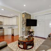 711 Avenue Y boasts a gut renovated first floor and includes sprawling New Zealand hardwood floors, a generous open layout with fully modernized kitchen inclusive of glistening Carrera marble counters and backsplash, custom cabinetry, and stainless steel appliances including a gas stove + oven, microwave, and dishwasher. The kitchen overlooks the generous great room, which boasts a pristine, custom closet and bar, custom stone wall detail with mounted TV, and the parlor is spacious enough for a separate dining area, study, or more. Two bedrooms are found at the back of the unit, with the master including four custom closets for all your organizational needs. The bathroom on this level has been beautifully-renovated to include wall-to-wall granite tiling, a luxurious, deep-soaking jacuzzi tub, separate shower, and vanity lighting.